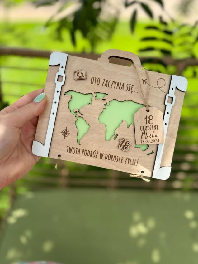 Kartka prezent na 18 URODZINY pudełko na pieniądze dla chłopaka dziewczyny